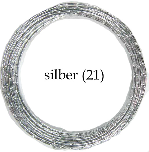 Dieser sehr biegsame Aluminium Draht hat einen wunderschönen Strasseffekt. Dieser wird durch einen speziellen Schliff in regelmässigen Abständen erreicht und lässt diesen Draht wie mit Diamanten besetzt strahlen.