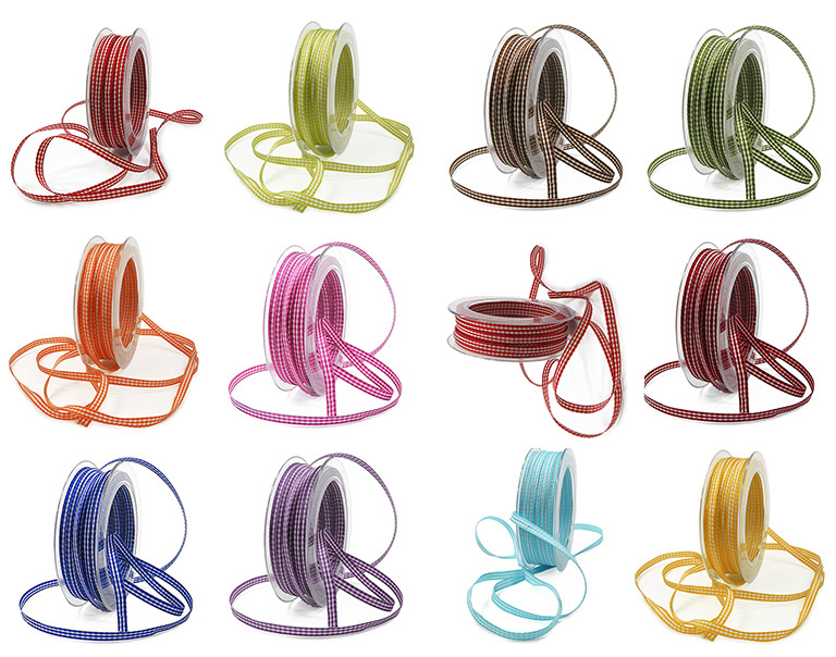 Karoband: 6mm breit / 25m-Rolle, mit feiner Webkante. Landhaus-Stil - Farbauswahl.