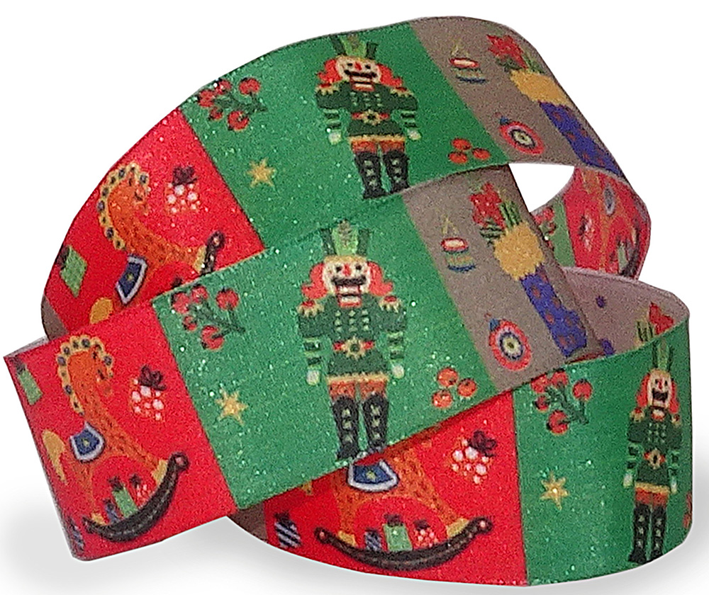 Dieses Dekorationsband aus Taft, besteht zu 100% aus Polyester. Die mehrfarbigen Druckmotive "nostalgischer Nussknacker", "Schaukelpferdchen" und die "Weihnachtsstiefel" sind einseitig auf das Band bedruckt. Das Material hat einen seidig schimmernden Glanz, einen kräftig und fülligen Griff.